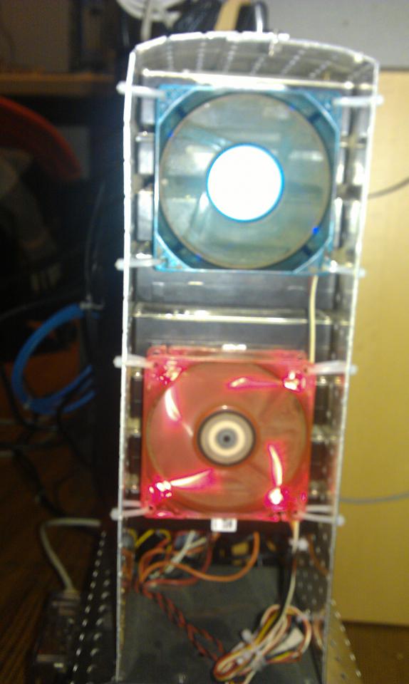 Der Festplattenkäfig entstand aus der Idee heraus, alte S-ATA Festplatten (die man aus stromkosten-technischer Sicht nicht dauerhaft im Einsatz haben möchte), trotzdem schnell verfügbar zu haben und als Backup-Platten nutzen zu können.